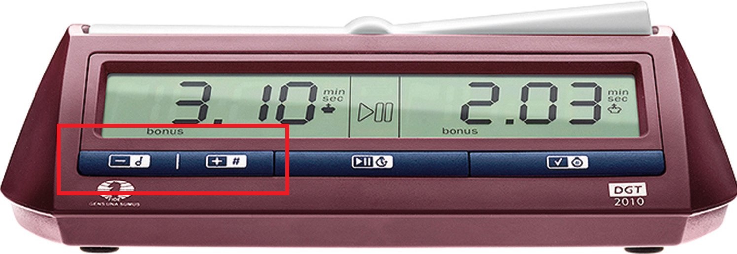 Om het programma te kiezen, gebruik je de knoppen + en - op de klok: